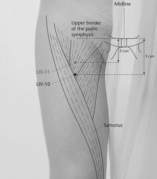 Локализация. На 3 цуня прямо вниз от точки Ци-чун Е.30, у наружного края длинной приводящей мышцы бедра.