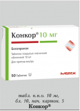 Обычно начальная доза составляет 5 мг препарата Конкор 1 раз в день. При необходимости дозу можно увеличить до 10 мг 1 раз в сутки.