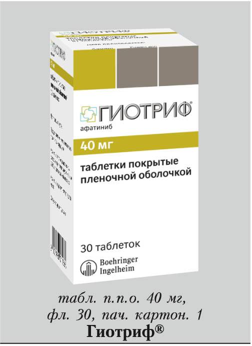 Лечение. Специфического антидота при передозировке нет. При подозрении на передозировку необходимо отменить Гиотриф и проводить симптоматическую терапию. При наличии показаний удалить невсосавшийся афатиниб можно путем промывания желудка или вызвав рвоту.