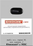 Таблетки черного цвета, овальной формы, покрытые сахарной оболочкой, с белой надписью «Юникем» на одной стороне.