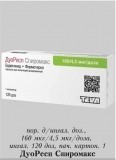 ХОБЛ. В двух исследованиях продолжительностью 12 мес у пациентов со среднетяжелой и тяжелой ХОБЛ (исходно: пребронходилатационный ОФВ1 <50% от должного; медиана постбронходилатационного ОФВ1 = 42% от должного) на фоне приема препарата ДуоРесп Спиромакс наблюдалось значительное снижение частоты обострений заболевания по сравнению с пациентами, получавшими в качестве терапии только формотерол или плацебо (средняя частота обострений 1,4 по сравнению с 1,8-1,9 в группе плацебо/формотерол). Не отмечено различий между приемом препарата ДуоРесп Спиромакс и формотерола на показатель ОФВ1.