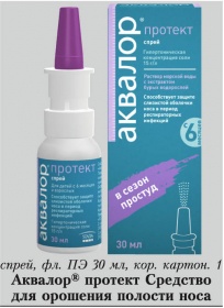 Для профилактики в период респираторных инфекций (грипп, ОРВИ) рекомендуется ежедневно впрыскивать Аквалор протект в каждый носовой ход 1-2 раза.