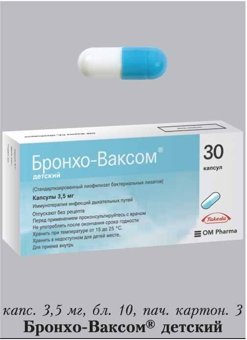 Лечение. По 1 капс. препарата Бронхо-Ваксом детский ежедневно утром натощак до исчезновения симптомов, но не менее 10 дней. При необходимости проведения антибиотикотерапии Бронхо-Ваксом детский следует принимать в сочетании с антибиотиком с начала лечения.