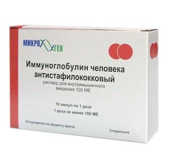Препарат представляет собой концентрированный раствор очищенной фракции иммуноглобулинов, выделенной методом фракционирования этиловым спиртом из плазмы крови здоровых доноров, содержащей антитела к стафилококковому экзотоксину (альфастафилолизину). Фракция иммуноглобулинов составляет не менее 97% от общего содержания белка.