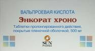 1 таблетка (Энкорат Хроно 500) с контролируемым высвобождением, покрытая пленочной оболочкой, содержит вальпроата натрия IP 333 мг и вальпроевой кислоты USP 145 мг (оба соответствуют вальпроату натрия 500 мг); в контурной безъячейковой упаковке 10 шт., в картонной пачке 3 упаковки.