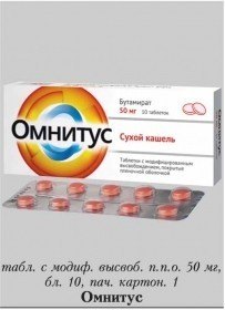 Бутамират, активное вещество препарата Омнитус, является противокашлевым средством центрального действия.