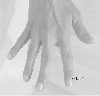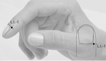 Локализация. На лучевой стороне указательного пальца руки, приблизительно на 0,1 цуня кнаружи от угла ногтя.