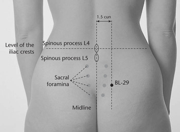 Локализация. На 1,5 цуня кнаружи от места под остистым отростком III крестцового позвонка.