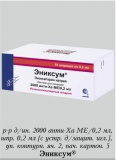 Эниксум является биоаналогом (биоподобным лекарственным препаратом). Эноксапарин натрия - низкомолекулярный гепарин (НМГ). Средняя молекулярная масса около 4500 Да: менее 2000 Да - <20%, от 2000 до 8000 Да - >68%, более 8000 Да - <18%. Эноксапарин натрия получают с помощью щелочной деполимеризации бензинового эфира гепарина, выделенного из слизистой оболочки тонкой кишки свиньи. Его структура характеризуется невосстанавливающимся фрагментом 2-О-сульфо-4-енпиразиносуроновой кислоты и восстанавливающимся фрагментом 2-N,6-О-дисульфо-D-глюкопиранозида. Структура эноксапарина натрия содержит около 20% (в пределах от 15 до 25%) 1,6-ангидропроизводного в восстанавливающемся фрагменте полисахаридной цепи.