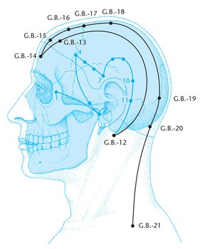 • Боль в затылочной области головы: VB19 Нао-кун, VG17 Нао-ху, VB20 Фэн-чи, V60 Кунь-лунь ,.