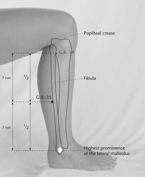 Таким образом, точку Ян-цзяо VB.35 можно использовать при наружном синдроме, который возникает в начальный период восприятия внешней патогенной Ци и характеризуется лихорадкой, ознобом, воспалением горла. Кроме того, точки-щели Ян-каналов часто используются при лечении болезней с острой болью. Ян-цзяо VB.35 является локальной точкой лечения боли в коленном суставе и голени.