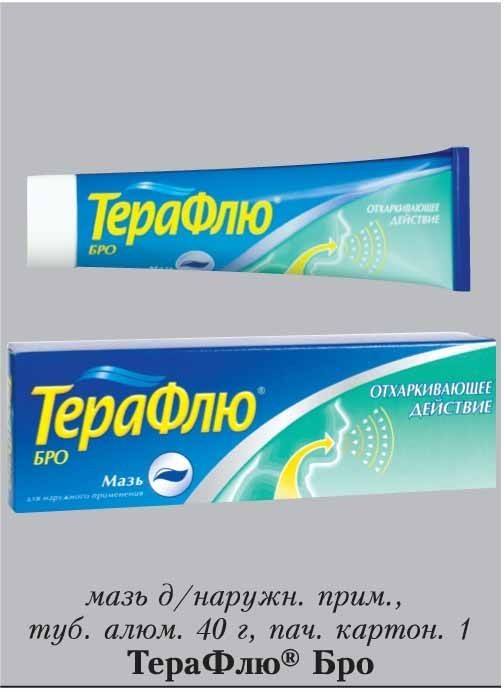 Комбинированное антисептическое, противовоспалительное и отхаркивающее средство для местного применения при заболеваниях дыхательных путей. Стимулирует дыхание, устраняет симптомы ОРЗ и простуды , оказывает антисептическое, противовоспалительное, отхаркивающее, бронходилатирующее действие. Мазь ТераФлю БРО не раздражает здоровую кожу.