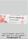 При наружном применении препарат Комфодерм К подавляет воспалительные и аллергические кожные реакции, так же как реакции, связанные с усиленной пролиферацией, что приводит к уменьшению объективных симптомов воспаления (эритема, отек, мокнутие) и субъективных ощущений (в тч зуд, раздражение, боль).