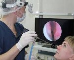 • Риноскопия. В ходе инструментального осмотра слизистой оболочки носовых раковин обнаруживаются воспалительные процессы, деформации, объемные образования, которые могли вызвать затруднения дыхания. Для дифференцировки гипертрофического и вазомоторного ринита проводят тест с адреналином.