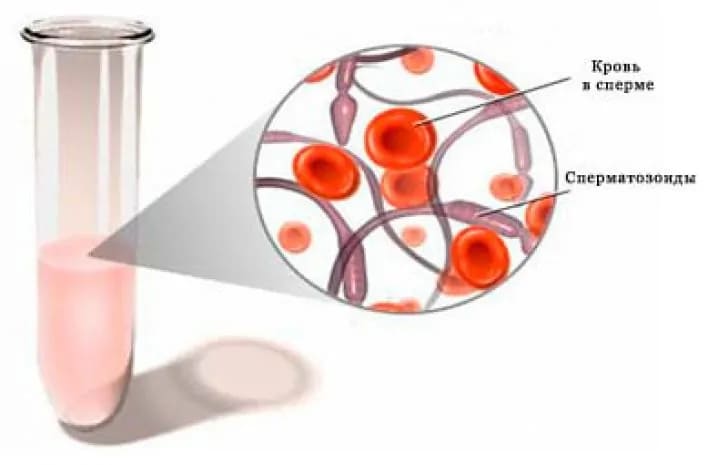 | Везикулит | В воспаленных семенных пузырьках появляется кровь. Проходя через везикулы сперма смешивается с кровяной жидкостью. |