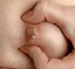 Молозивоподобные выделения из сосков. Это появление белого или желтоватого отделяемого из молочных желез. Симптом может сопровождаться болями и сильным набуханием груди, нарушениями менструального цикла. Истечение из сосков жидкости, напоминающей молозиво, наблюдается при физиологических гормональных изменениях, гипоталамо-гипофизарных патологиях, болезнях половой сферы. Для выявления причин молозивоподобных выделений применяют УЗИ грудных желез, маммографию, КТ груди и репродуктивных органов, гинекологический осмотр, исследуют уровень гормонов. Для устранения симптома проводят терапию основного заболевания.