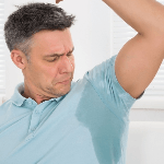 Чрезмерное потоотделение - субъективная жалоба: пациенты замечают, что потеют больше других. Мокрые пятна пота человек обнаруживает на одежде не только в подмышечных впадинах, но и на груди или спине. Потоотделение сопровождается похолоданием кожи, неприятным резким запахом, хорошо ощущаемым на расстоянии. Пациенты могут заметить, что большое количество пота появляется только на определенных частях тела - например, на ладонях и ступнях, на лице. Повышенное потоотделение вызывается стрессом, незначительными физическими нагрузками, приемом пищи.