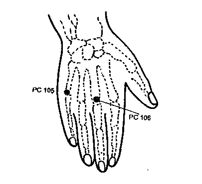 РС105 СЯО-ЧЖИ-ЦЗЕ -на тыльной поверхности кисти, на головке 5-й пястной кости.