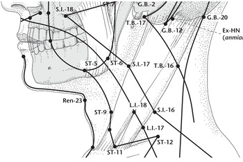 4. Точка Жэнь-ин Е.9 расположена в области горла, которое тесно связано с легкими. Легкие управляют всей Ци организма. В каноне «Лин шу» говорится: «Тань-чжун [VC.17] - это „море Ци , ею [точки] вливания - выше и ниже шейных позвонков (Я-мэнь VG.15 и Да-чжуй VG.14) вверху, Жэнь-ин [E.9J] спереди. Если в „море Ци образуется избыток, возникают чувство переполнения в грудной клетке, грубое дыхание и покраснение лица. Если в „море Ци образуется недостаток, возникают нехватка воздуха и нежелание разговаривать». Таким образом, использование точки Жэнь-ин Е.9 может быть эффективным при нарушении функций легких, а также при связанных с этими нарушениями состояниях недостатка и избытка Ци.