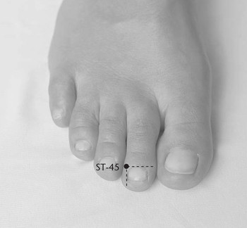 1. Ли-дуй Е.45 - точка-исток ножного ян-мин канала желудка, ее можноиспользовать при лечении различных заболеваний желудка: пониженииаппетита, ощущении голода с пониженным аппетитом, вздутии живота, болив эпигастральной области, несварении желудка.