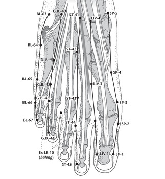 • Похолодание стопы и голени: R7 Фу-лю, V62 Шэнь-май, E45 Ли-дуй ,.