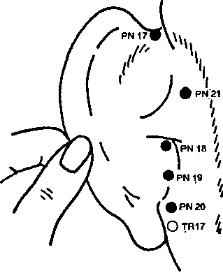 PN 17 ШАН-ЭР-ГЕНЬ - в бороздке между завитком ушной раковины и височной костью.