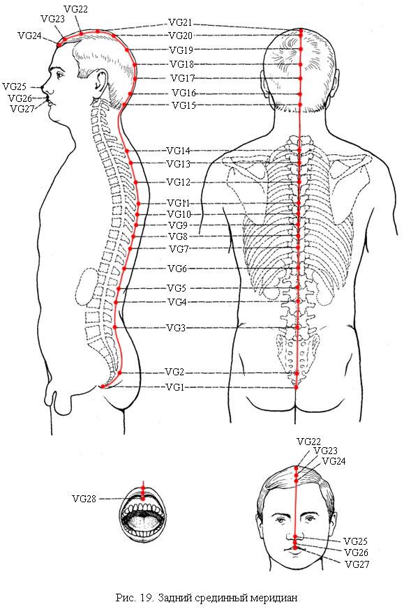 Задний срединный меридиан - непарный, относится к системе ян. Насчитывает 28 точек акупунктуры в Атласе акупунктурных точек.