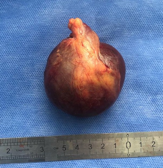 Инфаркт яичка. Макро устройство. (фото Давыдова Д.С.