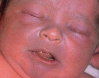 Атрезия легочного сосуда относится к «голубым» сердечным дефектам, которые клинически проявляются сразу после рождения ребенка. Акроцианоз или диффузный цианоз отмечен у новорожденного, степень тяжести которого зависит от типа атрезии и количества коллатеральных сосудов. Цианоз кожи усиливается от крика или плача. Одышка наблюдается даже в состоянии покоя, значительно улучшается при кормлении малыша, активных движениях рук, ползании.