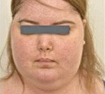У некоторых пациентов развивается диспластическое ожирение - неравномерное распределение избыточной жировой ткани. Основными местами отложения жира являются туловище, лицо и шея. Живот увеличен в размерах, конечности остаются тонкими, увядшими. Лицо становится круглым, внешне напоминает полнолуние - «лицо в форме луны». Расстройства скелетной системы представлены остеопорозом. Размер и форма костей лица, черепа, позвоночника, ступней и кистей рук меняются. Пациенты жалуются на чувство скованности и боли в суставах. Переломы и деформации костей становятся более частыми.