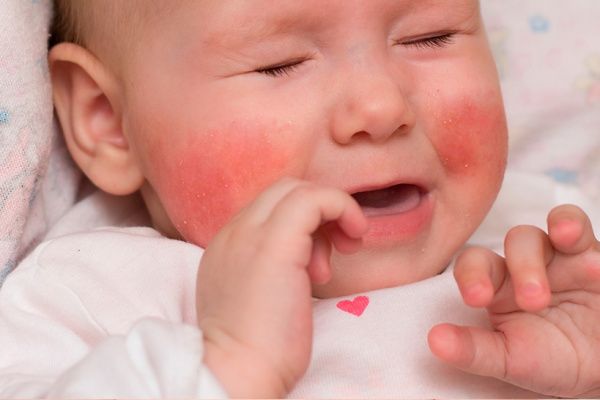 Первым признаком пищевой аллергии обычно являются поражения кожи. Сыпь выглядит как плоские красные пятна или папулы, возвышающиеся над кожей. Сыпь часто сопровождается шелушением и мучительным зудом. Поражения в основном находятся на лице и шее, вокруг локтей, предплечий и кистей рук. При повторных эпизодах пищевой сенсибилизации сыпь локализуется в одних и тех же местах.