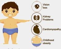 Синдром Альстрома. Это генетическая патология, при которой развиваются ожирение, пигментный ретинит, сахарный диабет 2 типа, нейросенсорная тугоухость, болезни сердца и нефропатия. Уже в первом десятилетии жизни отмечается постепенное снижение зрения и слуха, присоединяются новые инсулинорезистентность, повышенное артериальное давление, сердечная недостаточность, протеинурия, гипогонадизм. Для подтверждения диагноза проводится ЭхоС, офтальмоскопия, ЭРГ, аудиометрия, биохимия крови, ДНК-диагностика. Симптоматическое лечение: диета, сахароснижающие препараты, ингибиторы АПФ, выбор слухового аппарата, тонированные очки.