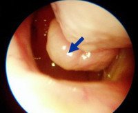 • Эндоскопия полости носа позволяет определить место гипертрофии, состояние слизистого слоя, перегородки и раковины (размер, цвет, форма, васкуляризация). При наличии полипозных образований ткань удаляется для гистологического исследования (биопсии).
