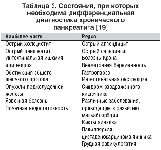 Клиническая картина хронического панкреатита складывается из сочетания болевого, диспептического синдромов с мальабсорбцией, потерей массы тела, различными симптомами функциональной недостаточности инсулярного аппарата.