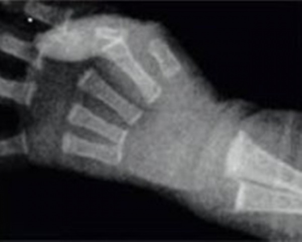 • Рентген костей. Видимые изменения на рентгенограммах определяются снижением плотности костной ткани на 20-40%. Характерные признаки остеопении недоношенного ребенка: «прозрачные» кости, расширенные и неровные края эпифизов, патологические переломы.