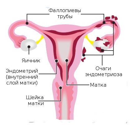 • перитонеальный эндометриоз - при поражении яичников, тазовой брюшины, маточных труб.