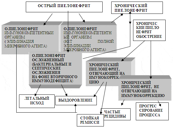 По характеру течения пиелонефрит может быть острым или хроническим.