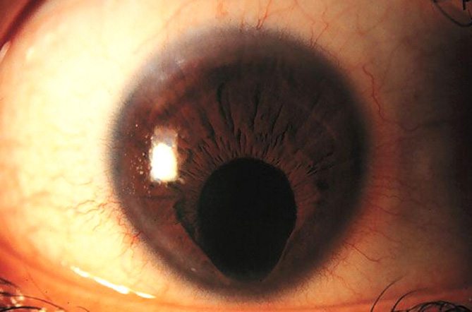 С клинической точки зрения в офтальмологии выделяют колобому радужки, сетчатки, сосудистой оболочки, диска зрительного нерва, хрусталика и век. При вовлечении в патологический процесс всех вышеуказанных структур развивается полная колобома, при менее обширном поражении - частичная. Расщепление может быть односторонним или поражать оба глаза. При типичной форме дефект локализируется в нижненазальном квадранте, что обусловлено топографией щели глазного канала. Атипической называют колобому с локализацией в других отделах органа зрения. Клинические проявления зависят от формы заболевания.