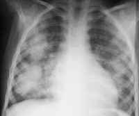 • Рентгенологические исследования. Рентгенография органов грудной клетки выявляет усиление выраженности легочного рисунка, наличие инфильтратов в виде облаковидных теней.