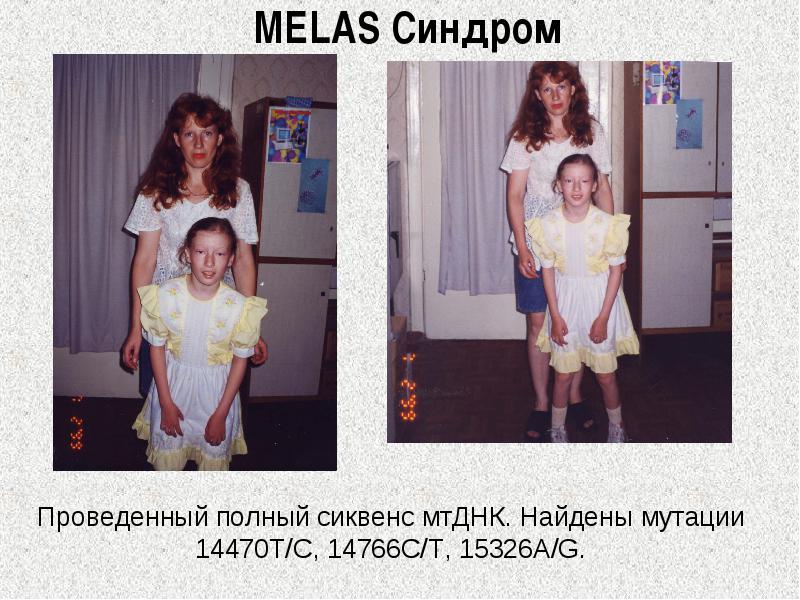 Синдром MELAS сопровождается полиморфной симптоматикой - диабетом, судорогами, снижением слуха, сердечными заболеваниями, низким ростом, эндокринопатиями, непереносимостью физических нагрузок и нейропсихиатрическими отклонениями.