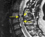 • Радиационная. Зависит от дозы и времени радиоактивного облучения. Радиационная миелопатия может возникать после лучевой терапии злокачественных новообразований.