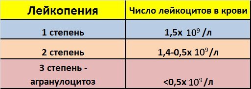При I степени лейкопении наблюдается уровень лейкоцитов в крови в пределах до 1,5?109/л и на этой стадии существует минимальный риск возникновения бактериальных осложнений у пациента.