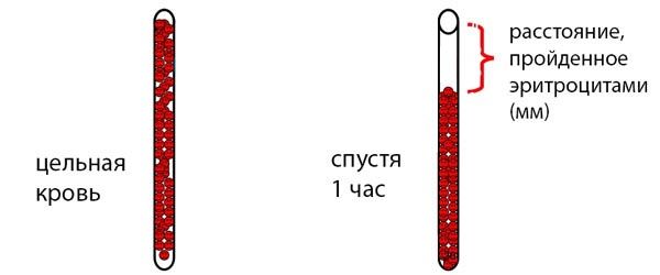 Тест основан на способности эритроцитов (без возможности свертывания крови) оседать под действием силы тяжести.