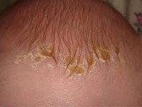 Патология обычно развивается у детей 3-6 месяцев. В преморбиде обращают на себя внимание вес ребенка выше среднего и значительная прибавка в весе по месяцам. Такие дети выглядят бледными и пастозными. Одним из первых симптомов экссудативно-катарального диатеза является гнейс - себорея волосистой части головы у детей до года. Часто образуются опрелости в естественных складках при соблюдении правил ухода. Отмечаются разнообразные кожные высыпания. У самых маленьких пациентов обычно наблюдается эритема и покраснение кожи щек с последующим шелушением («молочный струп»), у детей постарше - зудящая мелкоузелковая сыпь (строфулюс).