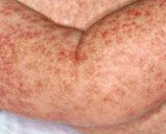 Начальный период омской геморрагической лихорадки протекает остро с высокой температурой (39-40˚C), ознобами, интенсивной головной болью, миалгиями, диспепсическим синдромом. У больных развивается отечность и резкая гиперемия лица, шеи, слизистых оболочек ротоглотки, инъекция сосудов склер и конъюнктивы. С первых дней болезни появляется геморрагическая сыпь на туловище и конечностях, слизистой зева и языка. При омской геморрагической лихорадке сравнительно редко возникают носовые, легочные, желудочно-кишечные и маточные кровотечения; обычно они не обильны и не продолжительны.