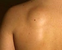 Гибернома. Очень редкая опухоль, происходящая из бурой жировой ткани, в основном развивающаяся в паравертебральной области, на шее, в подмышечных впадинах, в большинстве случаев доброкачественная, но встречается и злокачественная форма. Проявляется как эластичное, шаровидное, медленно растущее образование на коже диаметром 1-13 сантиметров, безболезненное; воспалительные проявления отсутствуют. Диагностика гиберномы основывается на осмотре у дерматолога или онколога, а также на гистологическом изучении тканей новообразования. Лечение этой опухоли только хирургическое, другие методики (например, рентгеновская терапия) малоэффективны.