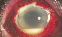 При проникающих ранениях глазного яблока панофтальмит развивается стремительно, в течение 2-3 дней. Гнойное поражение структур глаза сопровождается сильными болями в глазном яблоке, слезотечением, светобоязнью, рефлекторным блефароспазмом, быстрым и значительным снижением зрения. Объективные изменения характеризуются резкой гиперемией, отеком конъюнктивы и век, который может приводить к хемозу - ущемлению веками слизистой глаза. Роговица становится мутной и отечной; радужка расплавляется. В передней камере глаза скапливается гной; гнойный экссудат также обнаруживается в стекловидном теле. При панофтальмите происходит быстрое и существенное снижение зрения вплоть до светоощущения или слепоты.