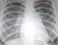 • Рентгенография грудной клетки. У большинства больных на рентгенограмме определяется кардиомегалия, выраженность которой зависит от стадии заболевания. Застой в малом круге кровообращения на фоне ХСН проявляется увеличением тени корней легкого и усилением легочного рисунка.