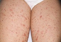 Острый лихеноидный парапсориаз (болезнь Муха. Габермана) - острая доброкачественная папулосквамозная разновидность каплевидного парапсориаза. Клиническим отличием патологии является истинный полиморфизм высыпаний, папулы, пустулы, буллы, геморрагии, гетерогенные корки и варицеллеподобные (геморрагические) элементы, сочетающиеся с привычными для каплевидного псориаза розовыми каплевидными папулами. Первичные элементы рассеяны, располагаются симметрично. Заболевание дебютирует остро и очень быстро генерализуется. Возможны явления продрома. Способно к самостоятельному спонтанному разрешению. Единственным достоверным методом диагностики является биопсия. При необходимости назначают местные и системные стероиды и антибиотики.
