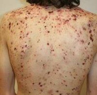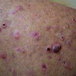 Молниеносные угри. Редкая форма угревой болезни, характеризующаяся появлением на коже туловища быстро изъязвляющихся узловатых или папулезных угрей. Заболевание сопровождается выраженным нарушением общего самочувствия в виде повышения температуры, болей в суставах, нарушения аппетита и тд Диагностика проводится по типичной клинической симптоматике. В анализе крови выявляются воспалительные изменения, а посев крови, как правило, не дает результата. Молниеносные угри требуют системного медикаментозного лечения в сочетании с местной терапией.